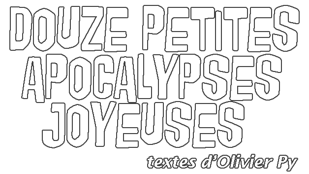 Douze petites apocalypses joyeuses, entre tendresse et insolence.